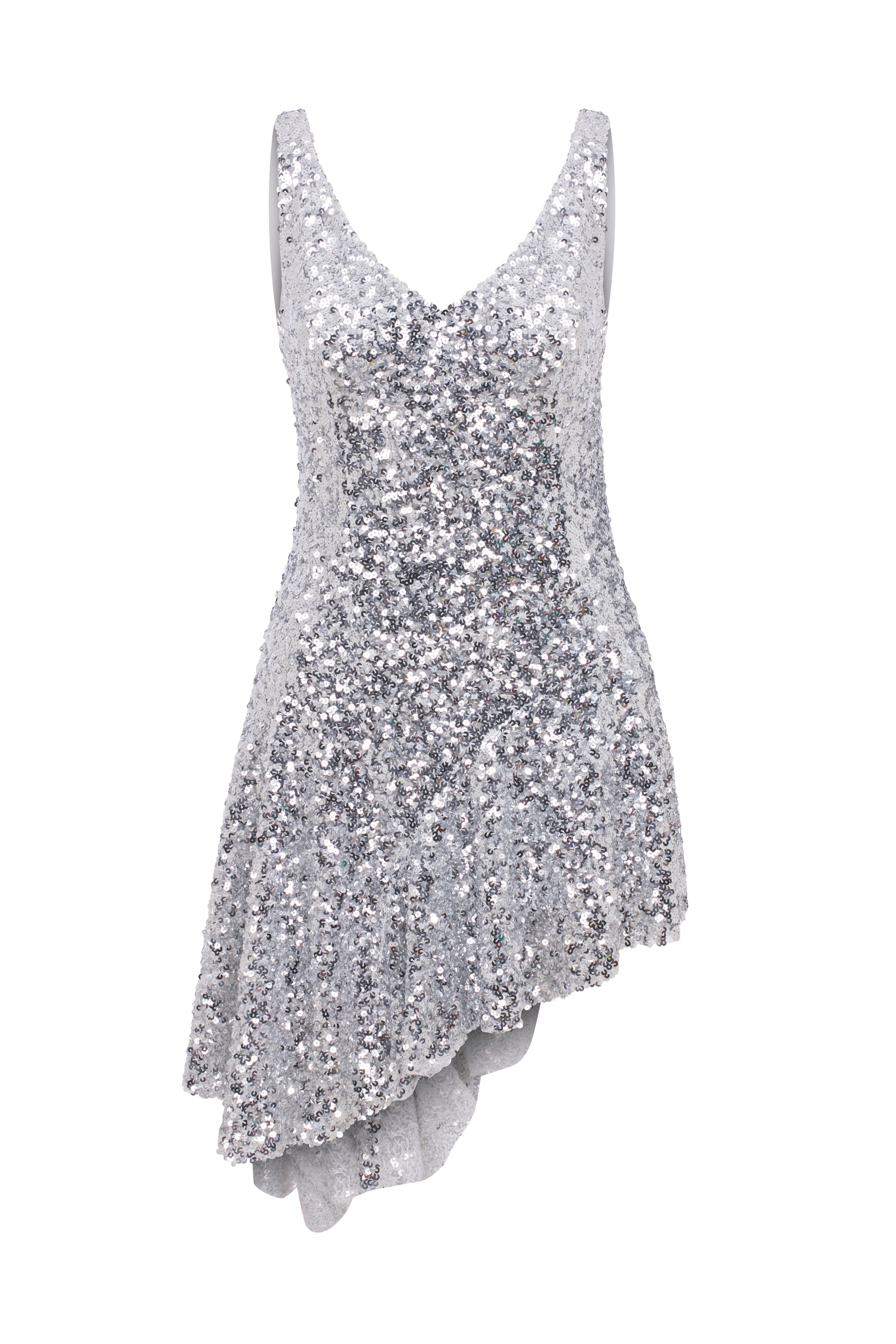 Marlene Asymmetric Mini Dress in Silver Sequin